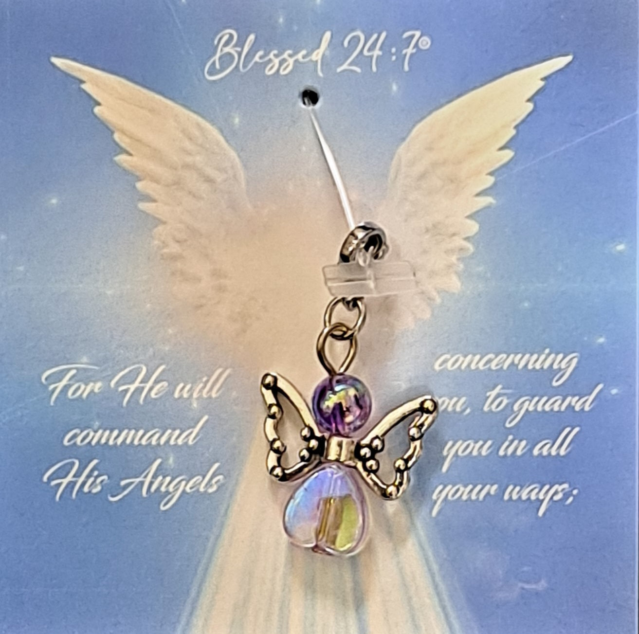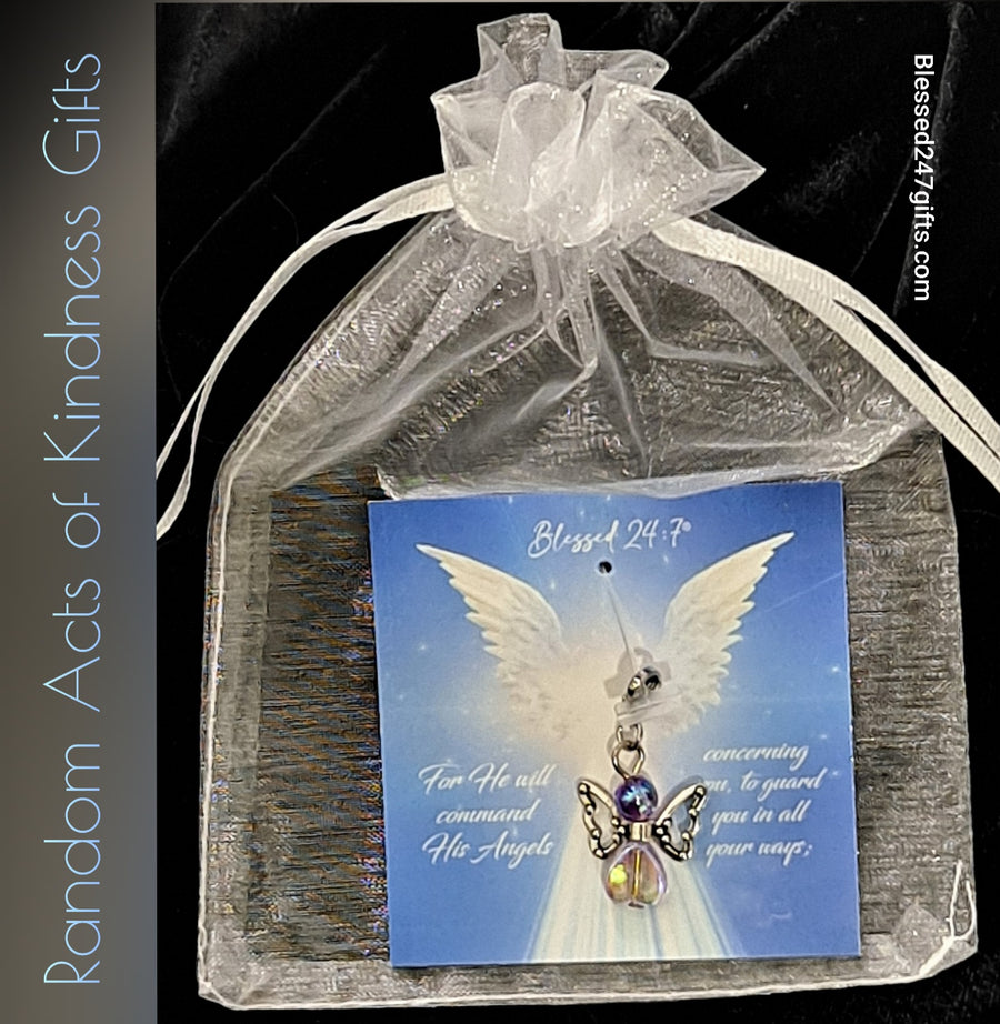Guardian Angel Gift NOTE CARD SAYS: "For He will command His Angels concerning you, to guard you in all your ways"; Bible Verse Psalms 91:11 Angel Wing Charm, Acrylic Heart Beads with Lobster Clasps. Inside a white organza sheer bag